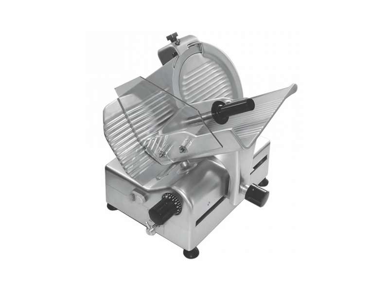 | Επιπλέον χαρακτηριστικά ζαμπονομηχανής | Αυτόματη με ιμάντα ξεκινάει αυτόματα όταν ανοίξουμε τον ρυθμιστή φετών. Ενσωματωμένο ακονιστήρι. Δύο μοτέρ, ένα μαχαιριού και ένα σαργιού. Υποβοήθηση του μοτέρ με δύο ανεμιστήρες. Μπουτόν on/off με ρελέ ασφαλείας. Σταθερή κίνηση κοπής, πρόσθετα μπράτσα σαργιού για συγκράτηση προϊόντων από τον χειριστή. Μεγάλο πλατώ για μεγάλη φόρτωση που κόβει με φυσική βαρύτητα αυτόματα ή χειροκίνητα οποιοδήποτε προϊόν. Ισχύς μοτέρ πλατώ: 0,30HP/ Ισχύς μοτέρ μαχαιριού: 0,40HP. |