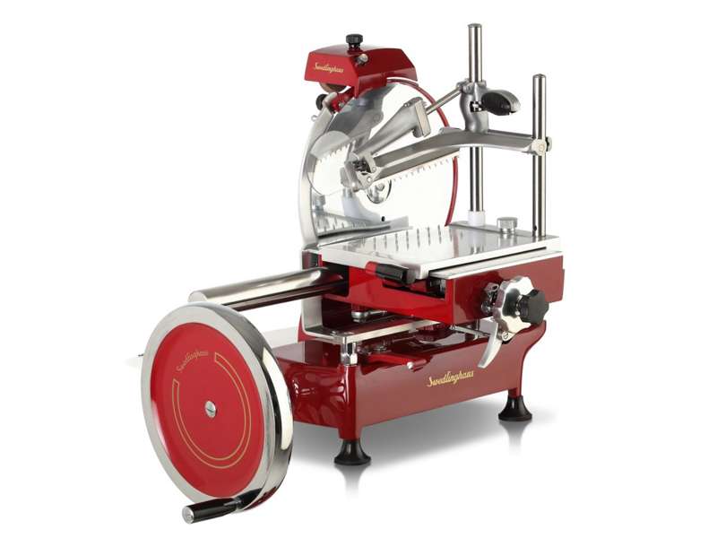 Μηχανή κοπής κρέατος σε φέτες σχεδιασμένη σε στυλ vintage που μπορεί να χρησιμοποιηθεί σε εστιατόρια, μπαρ κρασιού, κλαμπ, πολυτελείς επαύλεις κ.λπ. Τα ανταλλακτικά που έρχονται σε επαφή με τα τρόφιμα είναι από ανοξείδωτο χάλυβα, διαθέτει δακτύλιο προστασίας λεπίδας και είναι εύκολο να αποσυναρμολογηθεί για ενδελεχή καθαρισμό.  Η λεπίδα είναι επαγγελματικών προδιαγραφών για μεγάλη αντοχή και αποτελείται από ενισχυμένο χάλυβα 100Cr6. Κομψό στιλ, βασισμένο σε χειροποίητη παραγωγή, με μαχαίρι που αποτελεί την καλύτερη επιλογή για τον τεμαχισμό του προσούτο.