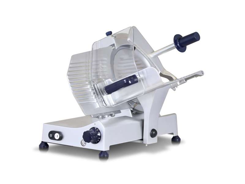 | Επιπλέον χαρακτηριστικά ζαμπονομηχανής | Μηχανή χειρός (στυλ αντίκας) κόβει κυρίως προσούτο & παντός τύπου μεγάλα αλλαντικά. Ειδικός ενσωματωμένος μηχανισμός για ακόνισμα μαχαιριού. Στεφάνι ασφαλείας μαχαιρίου. Ρυθμιστής φετών μεγάλης ακρίβειας. Κίνηση με οδοντωτό ιμάντα. Ειδική βάση με διπλή μπάρα συγκράτησης προϊόντος.Ιδανική για Ιταλικά εστιατόρια, Delicatessen, καταστήματα αλλαντικών Προαιρατικά: Βάση ζαμπονομηχανής |