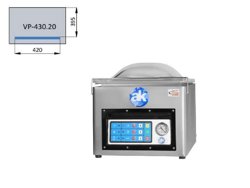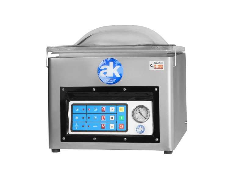 Γρήγορο, εύκολο στη χρήση, εξ ολοκλήρου κατασκευασμένο από ανοξείδωτο χάλυβα AISI 304. Με διάφανο καπάκι για τον έλεγχο της συσκευασίας, διπλή σφράγιση και ψηφιακό πίνακα ελέγχου. Εύκολη αποσυναρμολόγηση της ράβδου στεγανοποίησης. Μπροστινή μπάρα συγκόλλησης. Ιδανικό για συσκευαστήρια κρέατος, ελιών, αλλαντικών, τυριών κ.α.