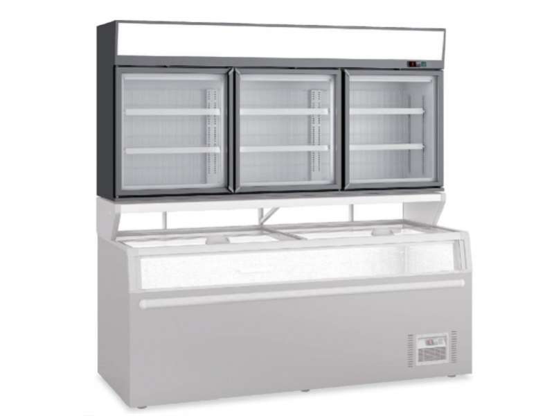 Βιτρίνα κατάψυξης επιτοίχια , στατικής ψύξης με 3 ανοιγόμενες πόρτες  & αυτόματη απόψυξη , χωρητικότητας 559 lt.