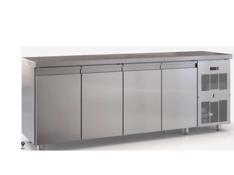 Επαγγελματικό ψυγείο πάγκος κατάψυξη με 4 πόρτες GN από ανοξείδωτο χάλυβα.