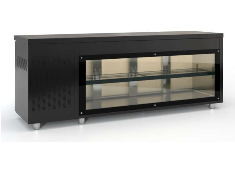 Επαγγελματικό ψυγείο πάγκος παντοπωλείου συντήρηση μαύρο με 4 πόρτες και βιτρίνα.