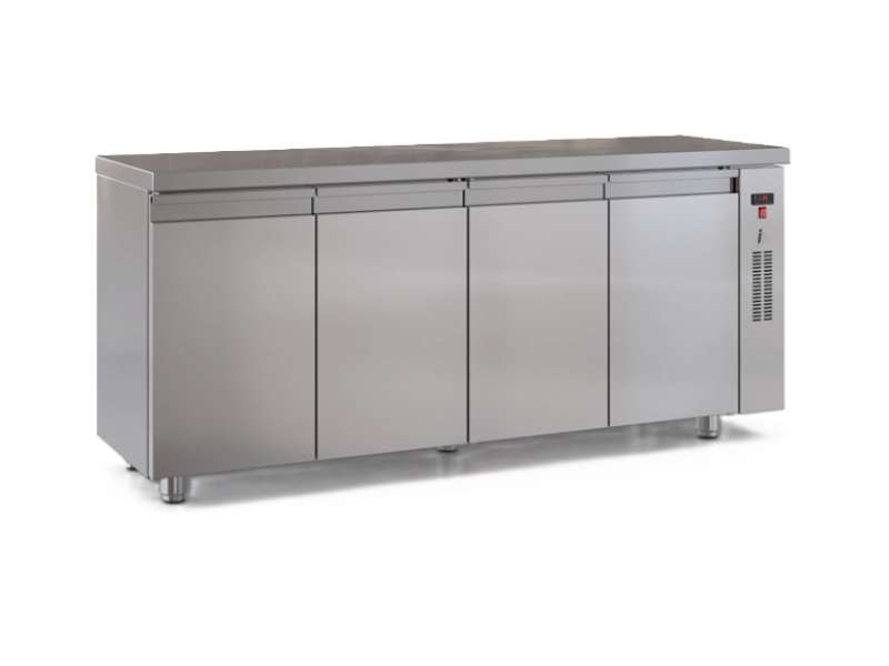 Επαγγελματικό ψυγείο πάγκος συντήρηση με 4 πόρτες χωρίς μηχανή από ανοξείδωτο χάλυβα.
