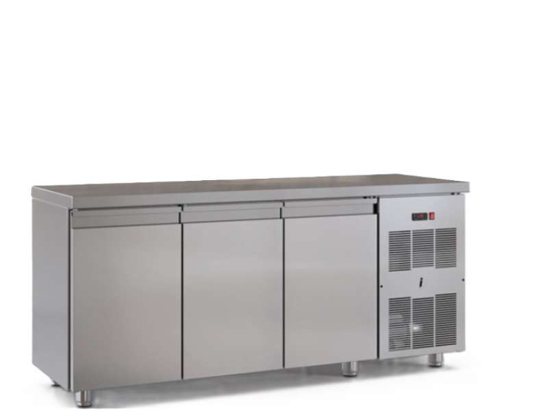 Επαγγελματικό ψυγείο πάγκος συντήρηση με 3 πόρτες GN από ανοξείδωτο χάλυβα.