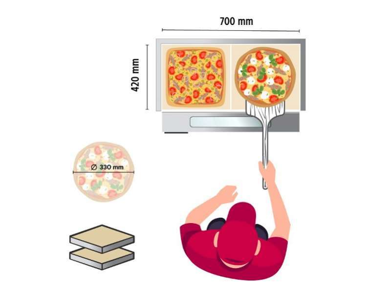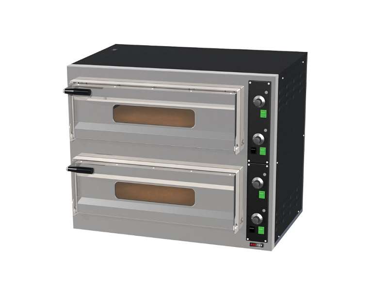Φούρνος πίτσας διόροφος στενός , με πυρίμαχη πλάκα κάτω πάχους 14mm , τεσσάρων θέσεων (4 x Ø33cm) , του εργοστασίου Redfox.