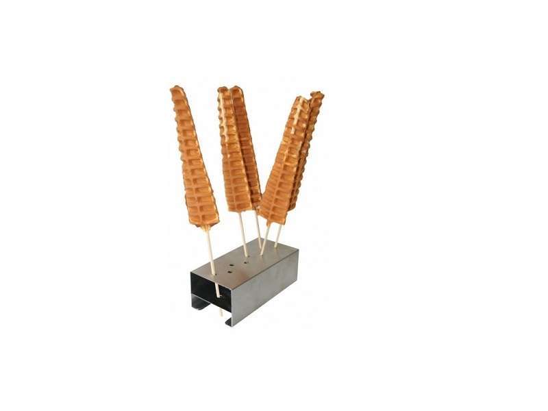 4 βάφλες lolly στο ξυλάκι 230x60x25mm. Ωραίο πρωτότυπο σχήμα για σερβίρισμα στο χέρι με άχνη ζάχαρη, σιρόπια, σοκολάτα. Το σχήμα θυμίζει το Χριστουγεννιάτικο έλατο. Το ωραίο σχήμα το ιδανικό μέγεθος και το γρήγορο ψήσιμο την έχουν αναδέιξει ως την δημοφιλέστερη βάφλα σε ξυλάκι.