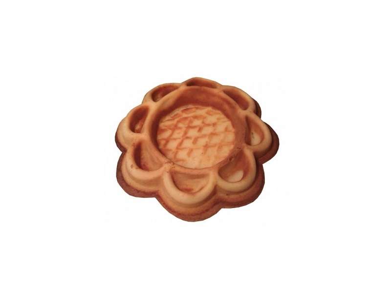 Βαφλιέρα για βάφλες σε ωραίο πρωτότυπο σχέδιο που μιμείται την βάση της τάρτας. Η βάφλα είναι σαν μαργαρίτα και στο κέντρο της είναι βαθιά για να την γεμίζετε με την γαρνιτούρα της αρεσκείας σας. Μπορείτε να φτιάξετε τάρτες με βάση την βάφλα και γέμισμα κρέμα ζαχαροπλαστικής και φρούτα ή να την γεμίσετε με παγωτό