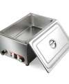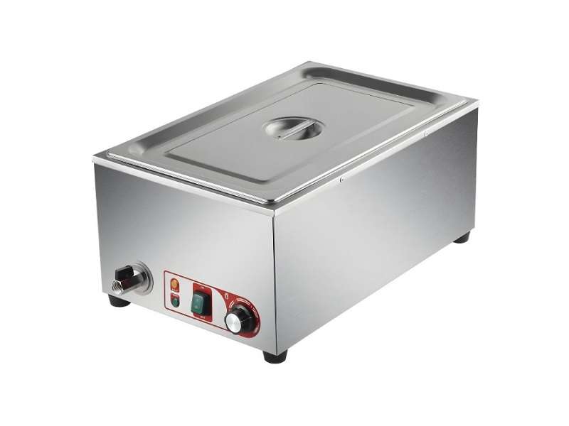 Επαγγελματικό μηχάνημα 'Bain Marie' που ζεσταίνει και συντηρεί τα τρόφιμα σε θερμοκρασία ασφαλή για κατανάλωση. Κατασκευασμένο από ανθεκτικό ανοξείδωτο ατσάλι, ιδανικό για εστιατόρια, ξενοδοχεία, μπουφέ, catering, επαγγελματική εστίαση, εκδηλώσεις, επισιτιστικές μονάδες. Ζεσταίνει τις παρασκευές και τις διατηρεί φρέσκες. Θερμοκρασία 30-85°C. Υψος GN: 15cm. GN 1/1: 530x325mm.Με βρύση νερού
