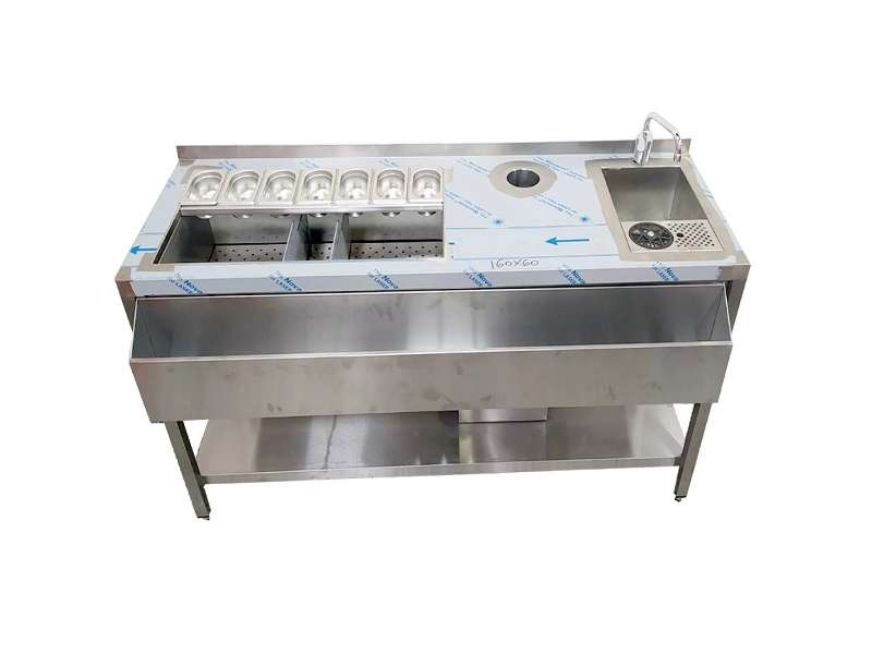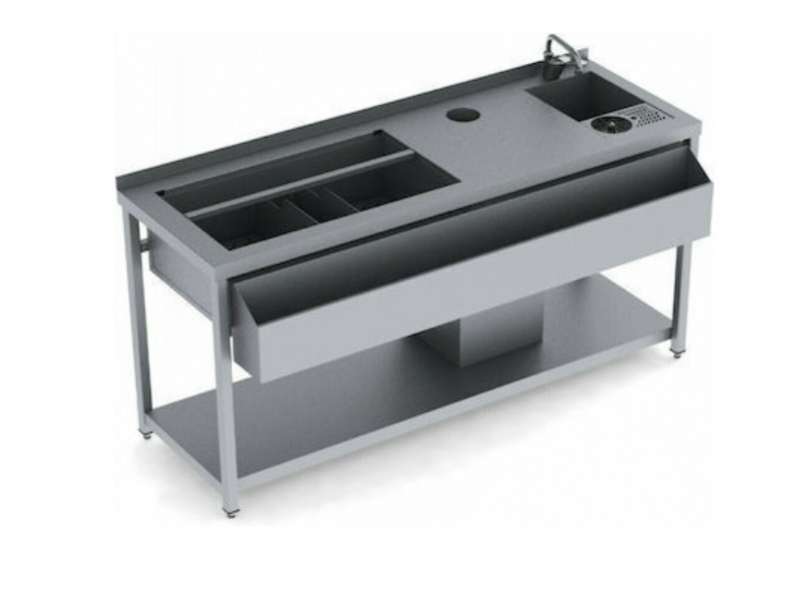 Bar station 160x60x86cm INOX με γούρνα, ρίνσερ και οπή ακαθάρτων