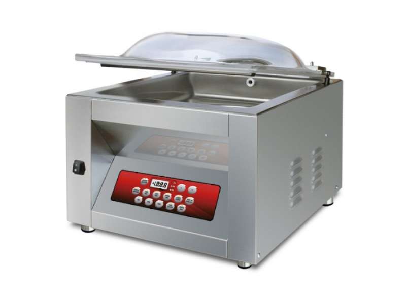 Γρήγορο, εύκολο στη χρήση, ανοξείδωτο ατσάλι, στιβαρή κατασκευή. Διάφανο καπάκι για τον έλεγχο της συσκευασίας. Στεγανοποίηση στο 99%, με 10 προγράμματα και πρόγραμμα για την συσκευασία υγρών. Θάλαμος κατασκευασμένος με στρογγυλεμένες γωνίες για εύκολο καθαρισμό. Διπλός αισθητήρας για στεγανοποίηση υγρών και αναρρόφηση vacuum. Mια μπάρα μεγάλου μήκους και πάχος 5mm. Επιλογές αντλίας θέρμανσης και αυτοκαθαριζόμενης αντλίας για να διατηρούνται οι αντλίες καθαρές και να λειτυργεί το μηχάνημα χωρίς βλάβες. Λειτουργία STEP VAC για τη συσκευασία υγρών. Λειτουργία SOFT VAC για ήπια στεγανοποιήση ώστε να μην καταστρέφονται τα προϊόντα. Πρόγραμμα για μαρινάδα κρέατος. Ιδανικό για καπνιστά λουκάνικα, κρεας, ψάρια κ.α. Απαραίτητο για τα ξενοδοχεία, τα εστιατόρια και κάθε επαγγελματική κουζίνα. Ιδανικό για συσκευασία κρέατος, ελιών, αλλαντικών, τυριών κλπ.