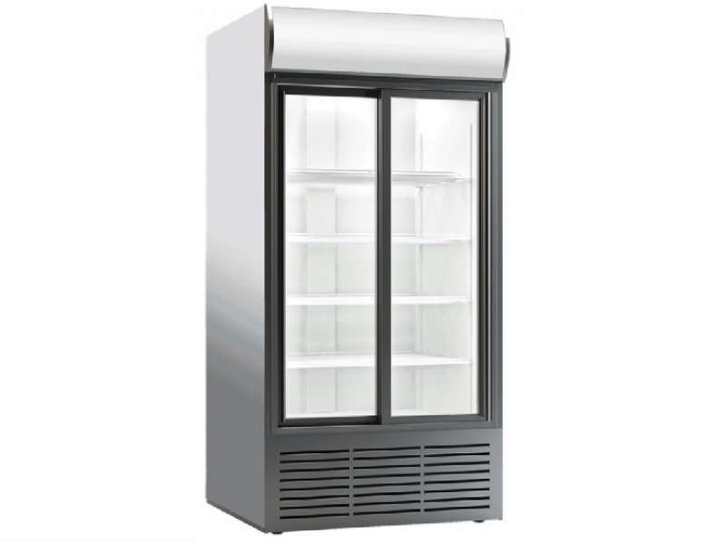 Βιτρίνα αναψυκτικών 852lt με βεβιασμένη ψύξη, 4 ρυθμιζόμενα ράφια, εσωτερικό φωτισμό και 2 συρόμενες πόρτες.