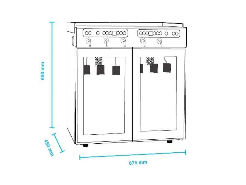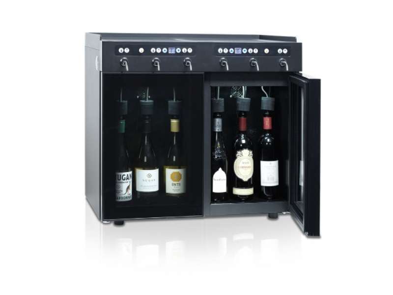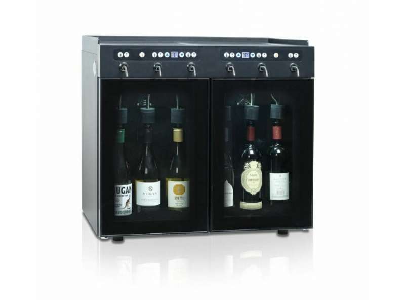 Βιτρίνα - διανεμητής κρασιών για 6 φιάλες , ιδανικός για γευσιγνωσία κρασιών αλλά και για μερίδες κρασιού ανά ποτήρι.Λόγω των μικρών του διαστάσεων & του κομψού του σχεδιασμού αποτελεί αξιόπιστη λύση για διανομή όλων των ειδών κρασιού και αποθήκευση του υπολοίπου από κάθε φιάλη.