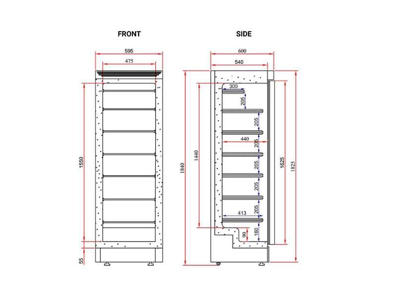 | Εξωτερικές διαστάσεις | 595x640x1840(h)mm |