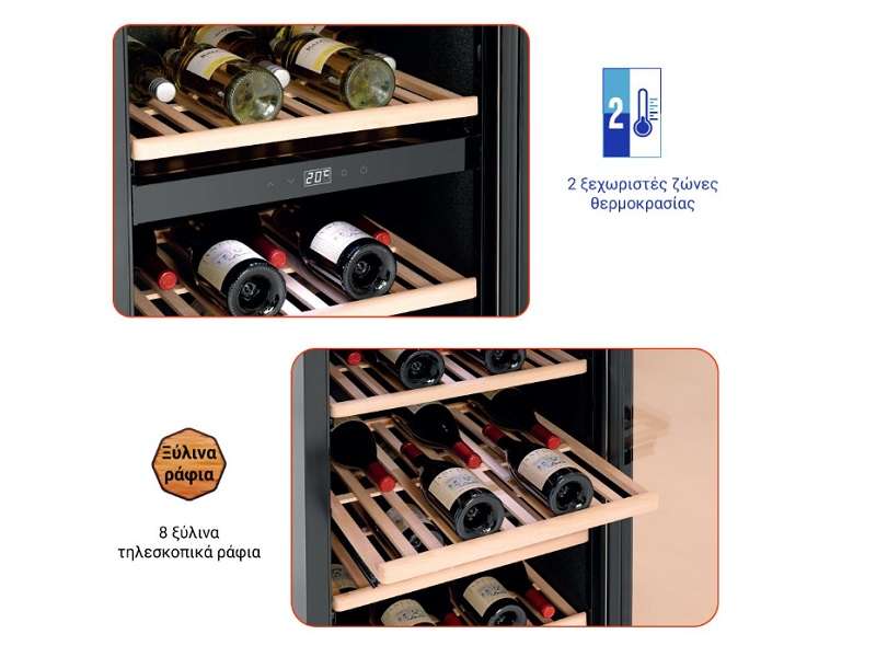 | Χωρητικότητα σε φιάλες | 180 φιάλες (80 επάνω / 100 κάτω) |