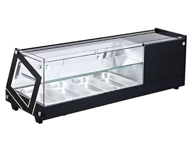 Ψυχόμενη βιτρίνα της εταιρείας Dynamic με συρόμενες πόρτες, μπροστινό επίπεδο γυαλί και εσωτερικό φωτισμό LED στο επάνω μέρος. Διαθέτει ψηφιακό ελεγκτή θερμοκρασίας με οθόνη και σύστημα άμεσης ψύξης.