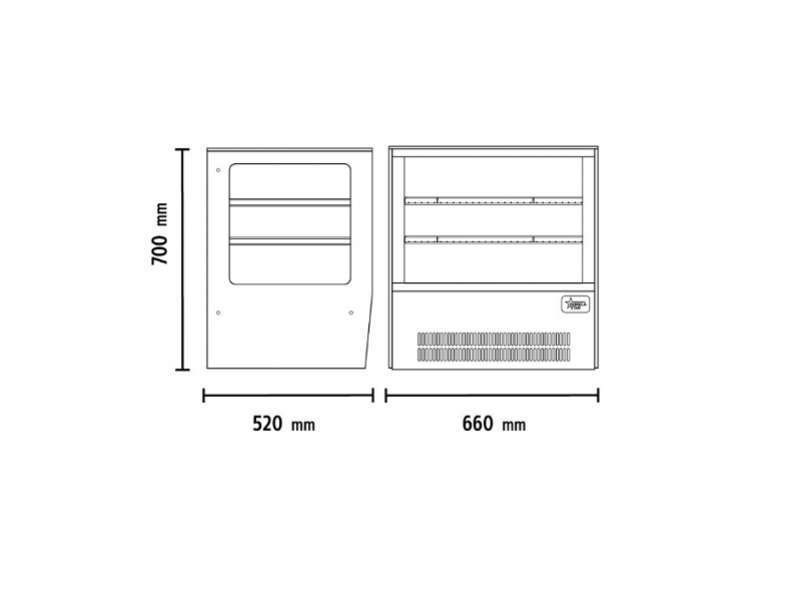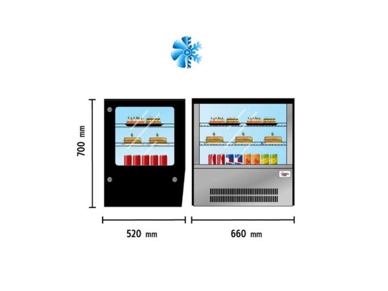 Επιτραπέζια βιτρίνα συντήρησης πανοραμική , με φωτισμό LED, χωρητικότητας 100 lt.