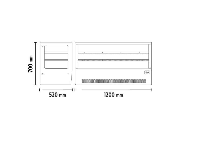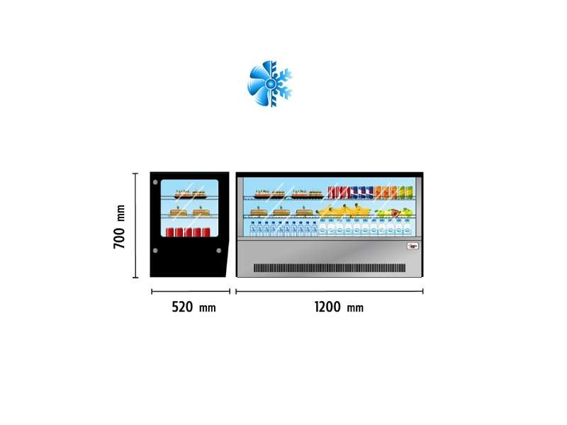 Επιτραπέζια βιτρίνα συντήρησης πανοραμική , με φωτισμό LED , χωρητικότητας 195 lt.