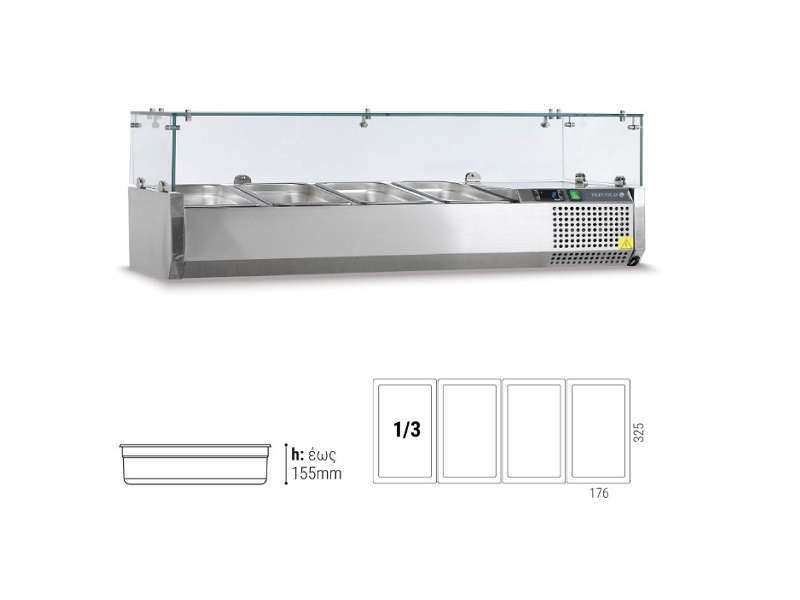 | Αριθμός θέσεων για λεκανάκια GN 1/3 | 4 |