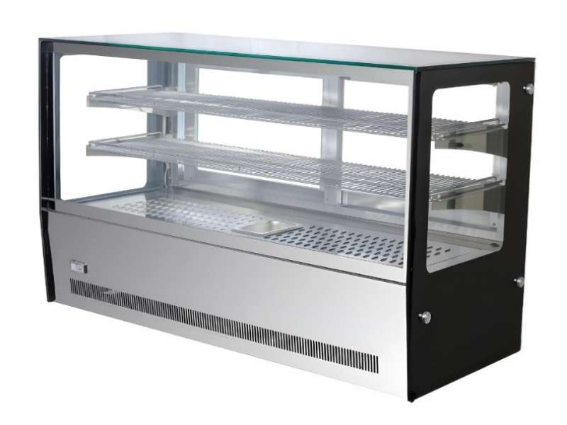 Επιτραπέζια Βιτρίνα θερμαινόμενη της εταιρειας Dynamic με ίσια κάθετα κρύσταλλα και βαμμένο πλαίσιο μαύρο περιμετρικά
