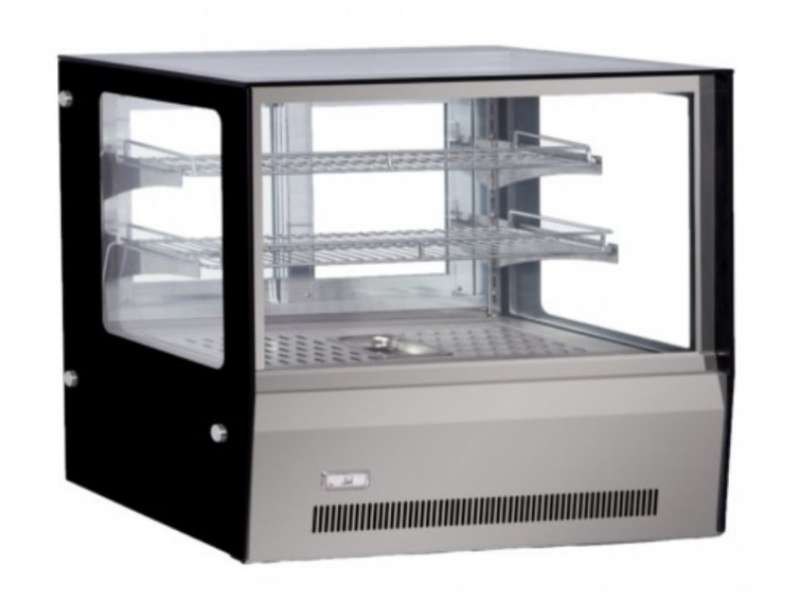 Επιτραπέζια Βιτρίνα θερμαινόμενη της εταιρειας Dynamic με ίσια κάθετα κρύσταλλα και βαμμένο πλαίσιο μαύρο περιμετρικά