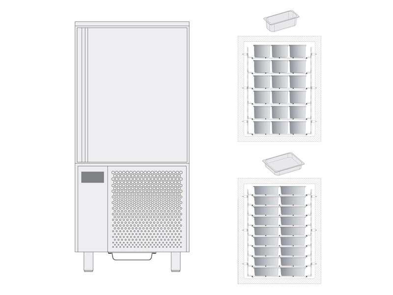 Χωρητικότητα  12 GN 1/1 ή 5 ταψιά 400x600 ή 6 λεκανάκια παγωτού (5lt)