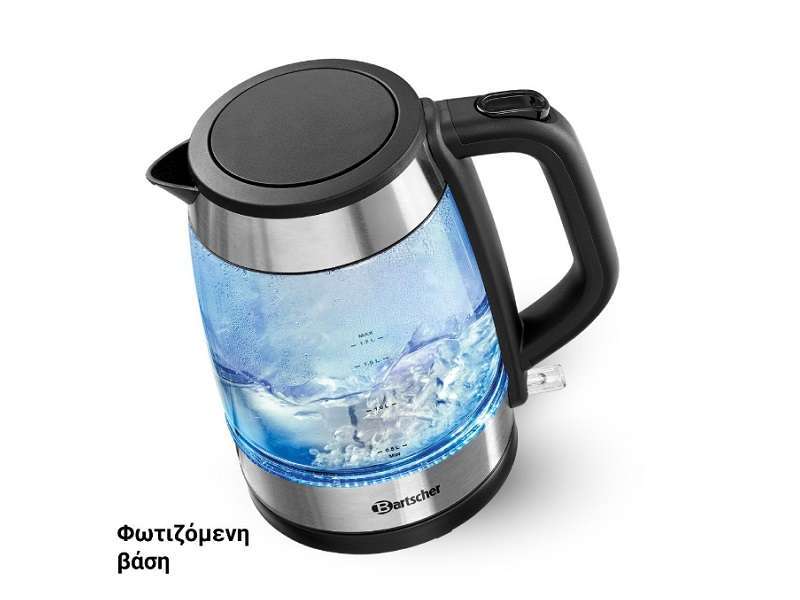 Βραστήρας νερού διάφανος 1,7 lt με φωτιζόμενη βάση, Bartscher Γερμανίας.