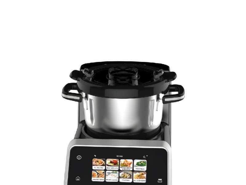 Το απόλυτο θερμομίξ τελευταίας τεχνολογίας, σχεδιασμένο να ανταποκρίνεται στις απαιτήσεις κάθε σύγχρονου επαγγελματία. Συνδυάζοντας την ισχύ με την ακρίβεια, αυτή η συσκευή τεμαχίζει, αναμειγνύει και μαγειρεύει ταυτόχρονα, εξοικονομώντας χρόνο και κόπο. Εξοπλισμένο με προηγμένο σύστημα επαγωγικής θέρμανσης, προσφέρει απόλυτο έλεγχο με εύρος θερμοκρασίας από 37°C έως 200°C. Είτε πρόκειται για απαλό λιώσιμο σοκολάτας είτε για γρήγορο σοτάρισμα, η επιτυχία είναι εγγυημένη. Μεγάλη Χωρητικότητα 4L, μπολ από ανοξείδωτο ατσάλι για την προετοιμασία μεγάλων ποσοτήτων. Το καπάκι ασφαλείας διασφαλίζει ότι κάθε διαδικασία γίνεται με απόλυτη προστασία. Έξυπνη ψηφιακή εμπειρία, μέσω της εύχρηστης οθόνης αφής. Με ενσωματωμένο μενού προεπιλεγμένων συνταγών και υποστήριξη αλλαγής γλώσσας αυτή η συσκευή είναι προσβάσιμη σε όλους. Διαθέτει σύστημα αυτοκαθαρισμού, ενώ όλα τα αποσπώμενα εξαρτήματα είναι κατάλληλα για πλυντήριο πιάτων, προσφέροντας μέγιστη υγιεινή με ελάχιστη προσπάθεια. Στη συσκευασία περιλαμβάνονται εξειδικευμένα εργαλεία για κάθε μαγειρική τεχνική (ζύμωμα, χτύπημα, μαγείρεμα στον ατμό).