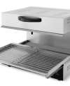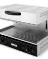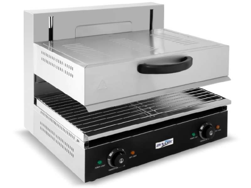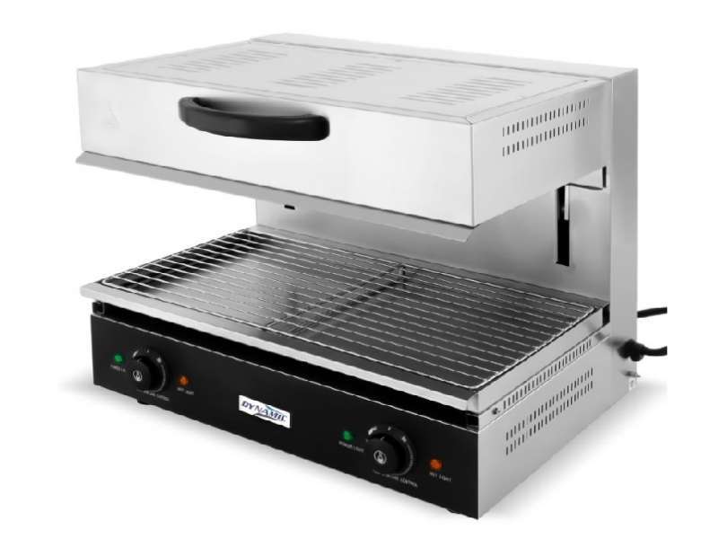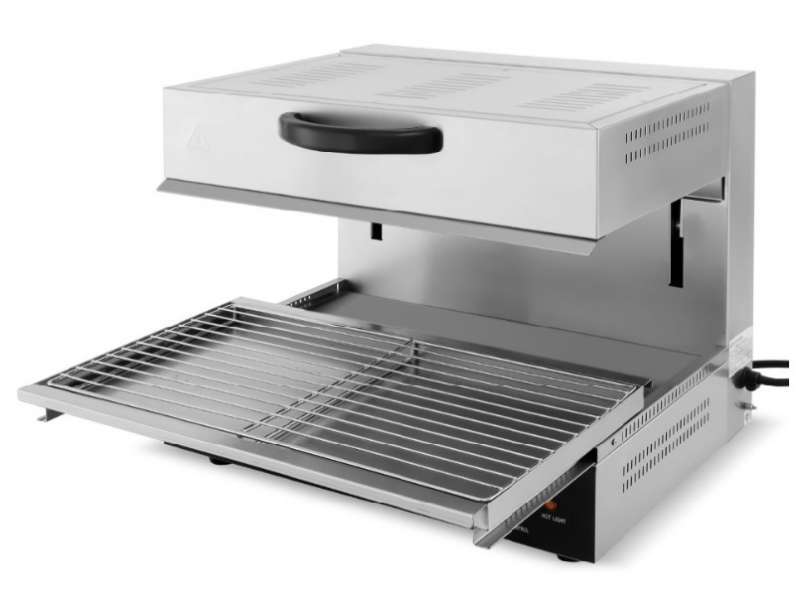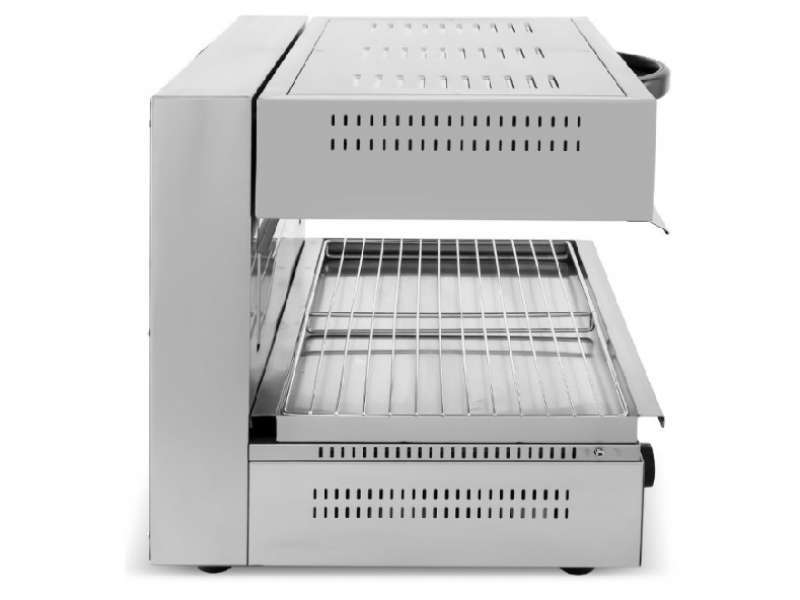 Ηλεκτρική επαγγελματική ψησταριά Salamander κατασκευασμένη από ανοξείδωτο ατσάλι και εύρος θερμοκρασίας από 50?~300?. Απόσταση θέρμανσης 0-140mm. Είναι μια εξειδικευμένη συσκευή κουζίνας ειδικά για ψήσιμο φαγητού σε υψηλότερες θερμοκρασίες από ό,τι οι παραδοσιακοί φούρνοι ψησίματος. Διοχετεύει τη θερμότητα ομοιόμορφα στο φαγητό και είναι μια εξαιρετικά πολύτιμη προσθήκη στην κουζίνα ενός εστιατορίου, καθώς επιτρέπει το ψήσιμο ή το φινίρισμα σε ξεχωριστή μονάδα, οπότε ελευθερώνει χώρο στον κυρίως φούρνο. Χρησιμεύει για το λιώσιμο, το ψήσιμο, το γκρατινάρισμα μετά το μαγείρεμα. Μπορεί να λιώσει τυρί γρήγορα και εύκολα, να καραμελώσει την ζάχαρη στα επιδόρπια, να ροδίσει την κορυφή της παρασκευής, τα σάντουιτς, τα τοστ ή ακόμα και να δώσει τραγανό φινίρισμα σε μπριζόλες και άλλα κρέατα. Με την ρύθμιση σε χαμηλότερη θερμοκρασία, διατηρεί τα τρόφιμα ζεστά και ασφαλή για τα τρόφιμα θερμοκρασία.
