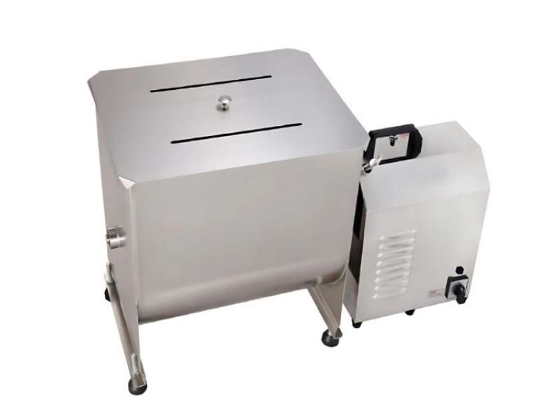 Ηλεκτρικός αναδευτήρας από ανοξείδωτο ατσάλι και αφαιρούμενο βραχίονα ανάμειξης για εύκολο καθαρισμό. Ιδανικός για κρεοπωλεία, εστιατόρια, ταβέρνες και μικρές μονάδες επεξεργασίας κρέατος.