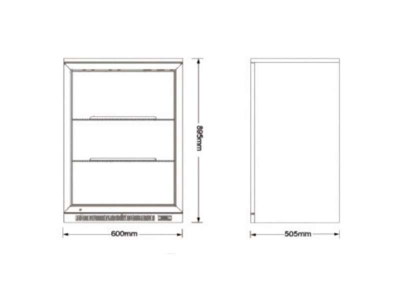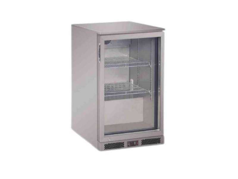 Ψυγείο back bar με μια διάφανη ανοιγόμενη πόρτα, εσωτερικά με ανάγλυφο αλουμίνιο, 2 ράφια και φωτισμό LED. Διαθέτει σύστημα βεβιασμένης ψύξης και εύρος θερμοκρασίας 2-8οC.