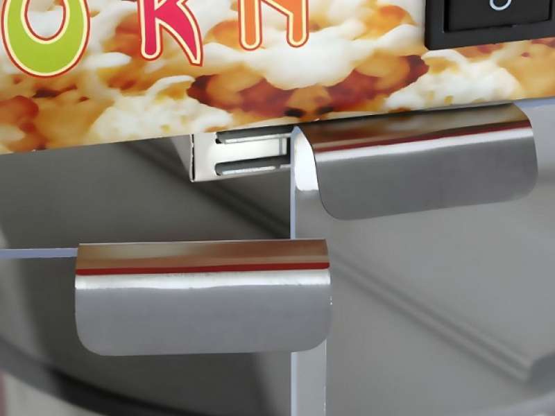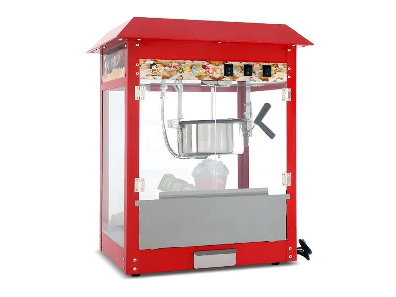 Επαγγελματική μηχανή παραγωγής ποπ κορν με σωλήνα θέρμανσης σχήματος U για πολύ γρήγορη θέρμανση. Κατασκευασμένο από ανοξείδωτο ατσάλι 201. Αντιολισθητικά πόδια από καουτσούκ για αποφυγή ολίσθησης. Δοχείο αλουμινίου από τεφλόν, το εσωτερικό υλικό του δοχείου είναι από αλουμίνιο και το εξωτερικό υλικό είναι ανοξείδωτο. Το υλικό της κάτω πλάκας και του συρταριού είναι από ανοξείδωτο ατσάλι 430. Η πόρτα είναι κατασκευασμένη από ακρυλικό και το τζάμι στις άλλες τρεις πλευρές είναι ανθεκτικό γυαλί. Χρώμα κόκκινο.