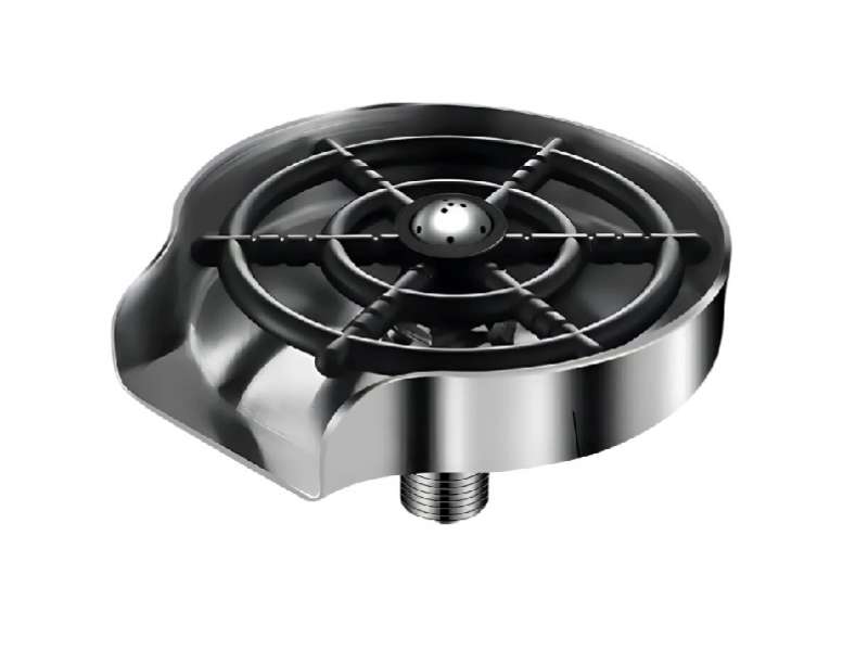 Automatic glass rinser, designed to be installed on a kitchen sink or bar countertop to quickly clean glassware like baby bottles, wine glasses, and travel mugs. With high-Pressure Cleaning, uses multi-angle water jets to blast away residue from hard-to-reach corners in seconds. Crafted from stainless steel to resist rust and corrosion. Operates easily by pressing the rim of the glass or cup against the star-shaped base to engage the nozzle. It can typically accommodate containers with diameters ranging from approximately 1.1 inches to 3.54 inches.