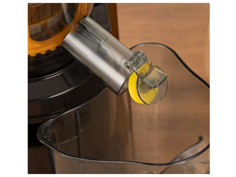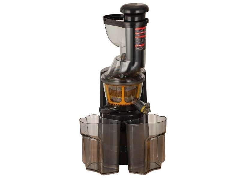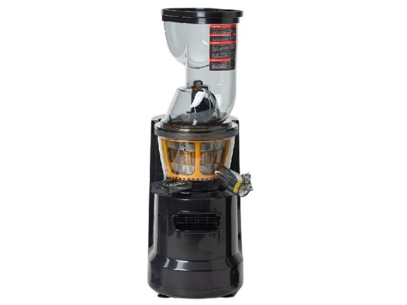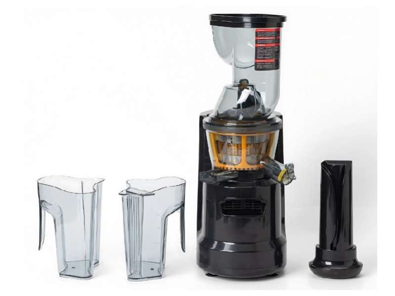 Αποχυμωτής φρούτων και λαχανικών με δύο κάδους, ένα για το χυμό και ένα για τα απορρίμματα. Εφοδιασμένο με δύο εξαρτήματα μαχαίρι και στραγγιστήρι. Ειδική χοάνη εισαγωγής με ειδικό pusher. Καπάκι απόσταξης. Κατασκευασμένο από inox και πλαστικό με μοτέρ υψηλής απόδοσης. Αποτελείται από αποσπώμενα μέρη για εύκολο καθάρισμα. Ιδανικό για εστιατόρια, καφετέριες, μπαρ, ξενοδοχεία, κρουαζιερόπλοια και για όλες τις επιχειρήσεις εστίασης.