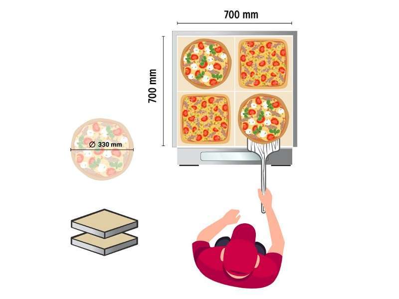 Φούρνος πίτσας διόροφος στενός , με πυρίμαχη πλάκα κάτω πάχους 14 mm, οκτώ θέσεων (8 x Ø33cm) , του εργοστασίου Redfox.