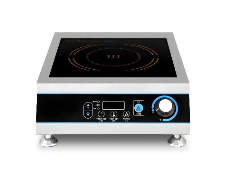 Οικονομική επαγωγική εστία με επίπεδη μαύρη επιφάνεια γυαλιού crystle πάχους 4mm. Πηνίο 22cm με μαγνητική λωρίδα 2cm και σύστημα προστασίας από την υπερθέρμανση. Χρονοδιακόπτης 0-120min.