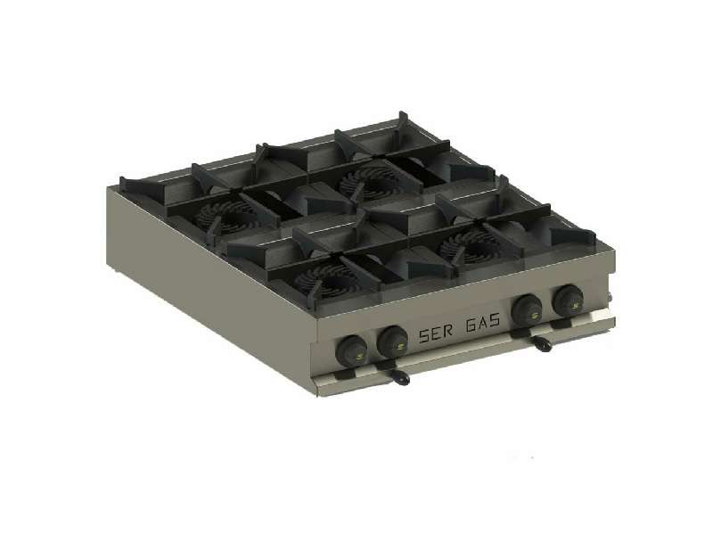 Επιτραπέζια εστία FL48 της εταιρείας Sergas, με 4 εστίες μαγειρέματος. Ο τύπος της είναι υγραερίου, δηλαδή η φλόγα είναι ορατή και το μάτι περιβάλλεται από ένα μεταλλικό πλαίσιο που στηρίζει το σκεύος. Για να λειτουργήσει απαιτείται σύνδεση με φιάλη υγραερίου. Είναι ιδανική επιλογή για μαγείρεμα στο τηγάνι και ιδιαίτερα για συνταγές που μαγειρεύονται σε τηγάνι wok.