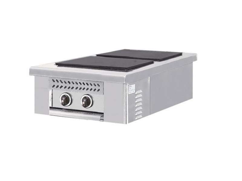 Ηλεκτρική κουζίνα δύο εστιών ρεύματος 30 x 30 cm και συρτάρι περισυλλογής.