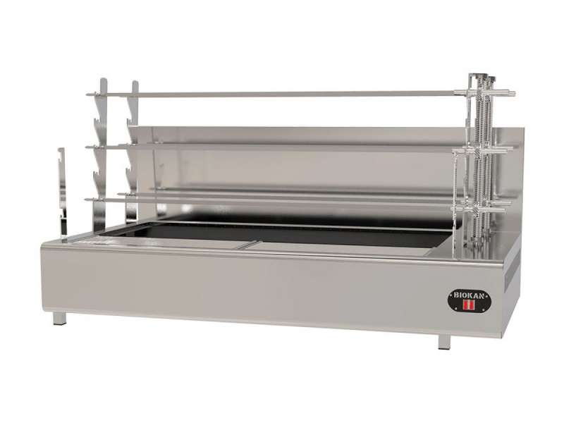 Κατασκευή από ανοξείδωτο χάλυβα AISI 430 σατινέ με φινίρισμα Scotch-Brite , Δυο άξονες υπό κλίση , Λάμες 5 θέσεων , Έξι τετράγωνες σούβλες μήκους 160cm(ωφέλιμο μήκος 125cm): δυο σούβλες πάχους 12x12mm(ενδείκνυνται για κοντοσούβλι) και τέσσερις πάχους 14x14mm(ενδείκνυνται για αρνί) , Τέσσερα άγκιστρα για αρνί πάχους 16x16mm και μήκους 15cm , Δύο Σχάρες επινικελωμένες , Ξεχωριστός ηλεκτροκινητήρας ανά άξονα , Δύο Ηλεκτροκινητήρες 220V με μειωτήρα , Ξεχωριστοί διακόπτες ON/OFF ανά ηλεκτροκινητήρα , ΜΟΤΕΡ: 220V/25Watt