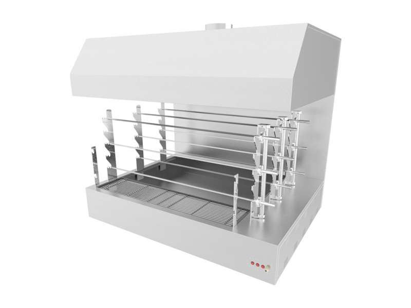 Κατασκευή από ανοξείδωτο χάλυβα AISI 430 σατινέ με φινίρισμα Scotch-Brite , Τρεις άξονες υπό κλίση , Λάμες 5 θέσεων , Εννιά τετράγωνες σούβλες μήκους 160cm(ωφέλιμο μήκος 125cm): τρεις σούβλες πάχους 12x12mm(ενδείκνυνται για κοντοσούβλι) και έξι πάχους 14x14mm(ενδείκνυνται για αρνί) , Έξι άγκιστρα για αρνί πάχους 16x16mm και μήκους 15cm , Δύο Σχάρες επινικελωμένες , Ξεχωριστός ηλεκτροκινητήρας ανά άξονα , Δύο Ηλεκτροκινητήρες 220V με μειωτήρα , Ξεχωριστοί διακόπτες ON/OFF ανά ηλεκτροκινητήρα  , ΜΟΤΕΡ: 220V/25Wat