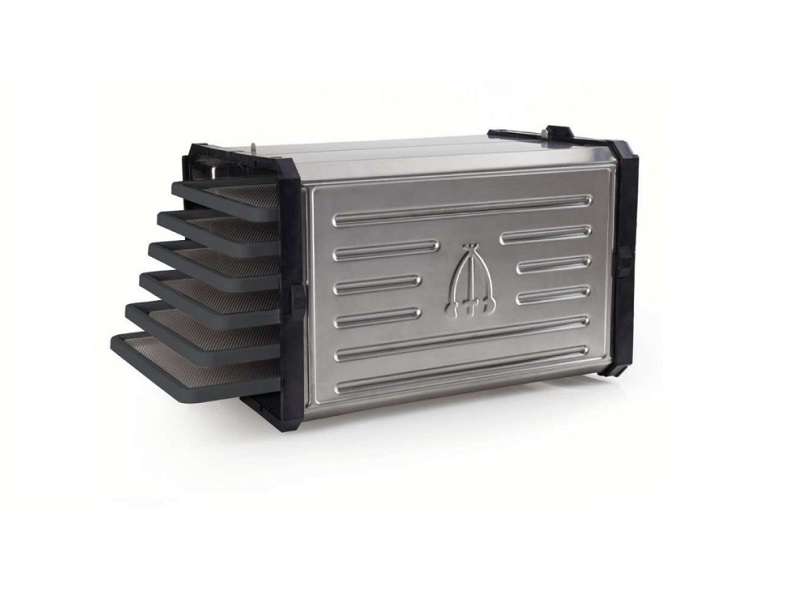 Καινοτόμος, αποτελεσματικός και εύκολος στη χρήση, ο αφυγραντήρας τροφίμων Atacama επιτρέπει την συντήρηση φρούτων, λαχανικών, μανιταριών, βοτάνων, κρεάτων, ζυμαρικών και πολλών άλλων τροφίμων. Εξασφαλίζει πλούσια γεύση και διατήρηση των θρεπτικών συστατικών. Tεχνολογία «Wide Flow» για ομοιόμορφη απόδοση αφυδάτωσης σε όλη την επιφάνεια του δίσκου. Με ψηφιακό πίνακα ελέγχου και οθόνη, διακόπτη ασφαλείας On/Off, 5 προγράμματα AUTO για εύκολο χειρισμό, 1 πρόγραμμα EVO για πλήρως προσαρμόσιμες ρυθμίσεις, 1 πρόγραμμα ΚΑΘΥΣΤΕΡΗΣΗΣ για καθυστερημένη έναρξη, έξι δίσκοι αποξήρανσης ABS ποιότητας τροφίμων.