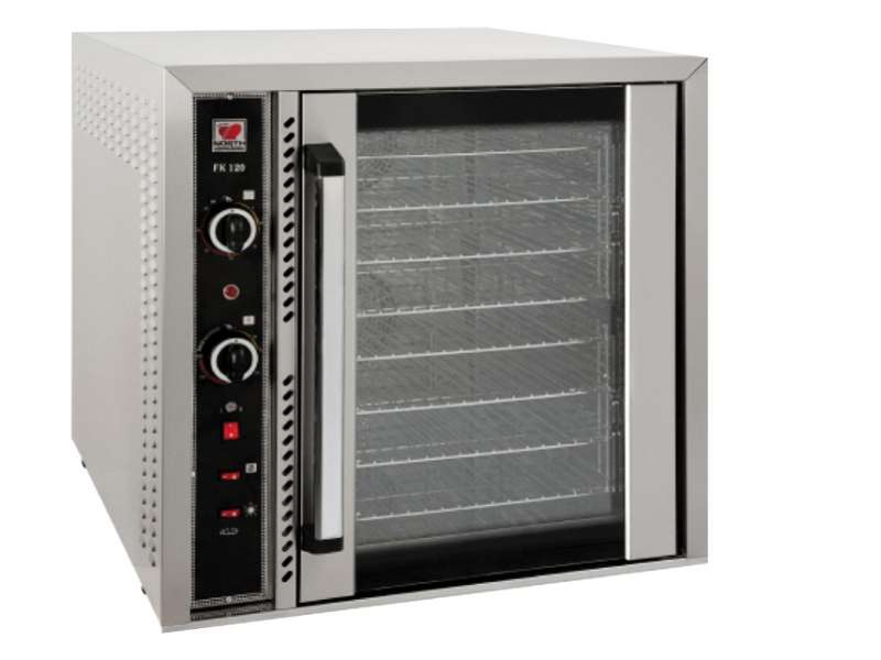 Ηλεκτρικός φούρνος αέρος με 8 θέσεις για λαμαρίνες 40 x 60 cm ή GN 1/1 ή 1/2. Διαθέτει θερμοστάτη 300 οC, χρονοδιακόπτη 120min και διπλό sequrit τζάμι στην πόρτα