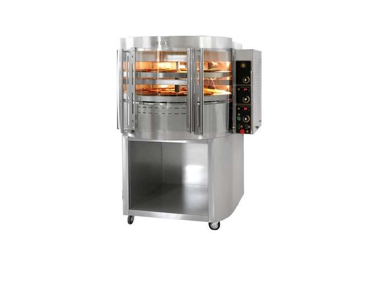 Φούρνοι πίτσας υγραερίου κυκλικής σχεδίασης με καμπυλωτές βιτρίνες και άπλετο φωτισμό που επιτρέπούν την άμεση επιτήρηση της διαδικασίας ψησίματος επάνω σε περιστρεφόμενη κεραμική πλάκα.