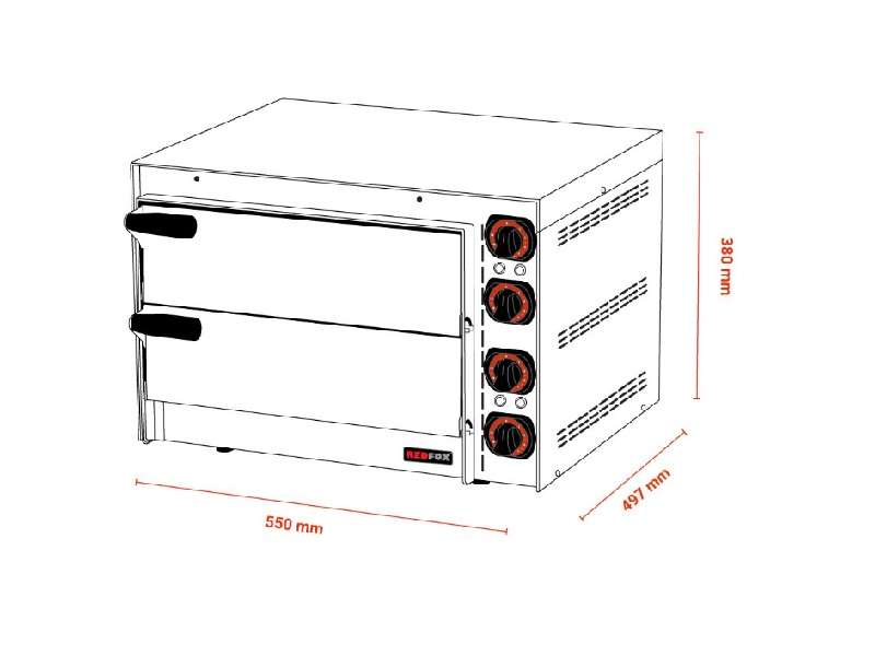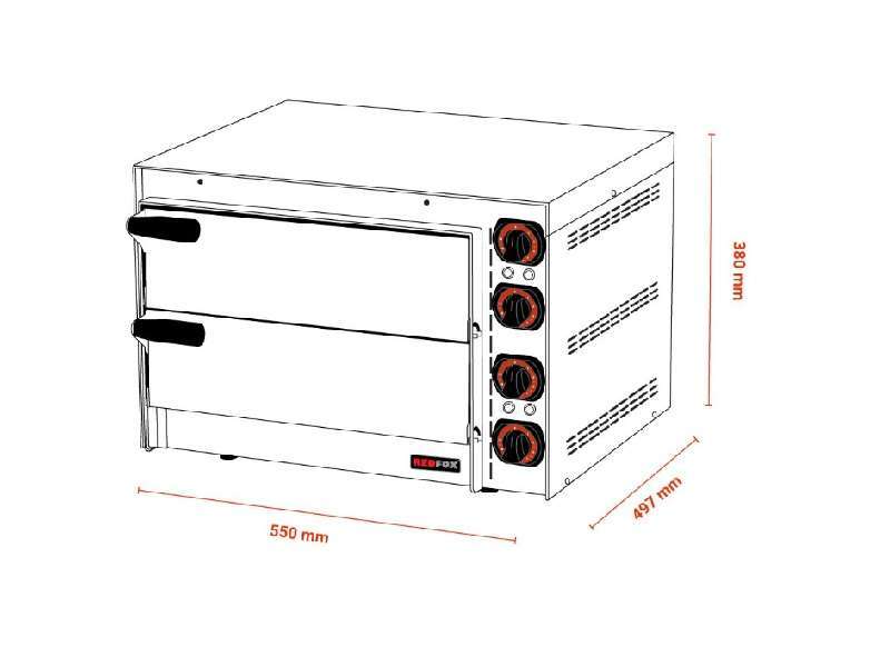 Φούρνος πίτσας, με πυρίμαχη πλάκα κάτω, δύο θέσεων (2x35Øcm) , του εργοστασίου Redfox.