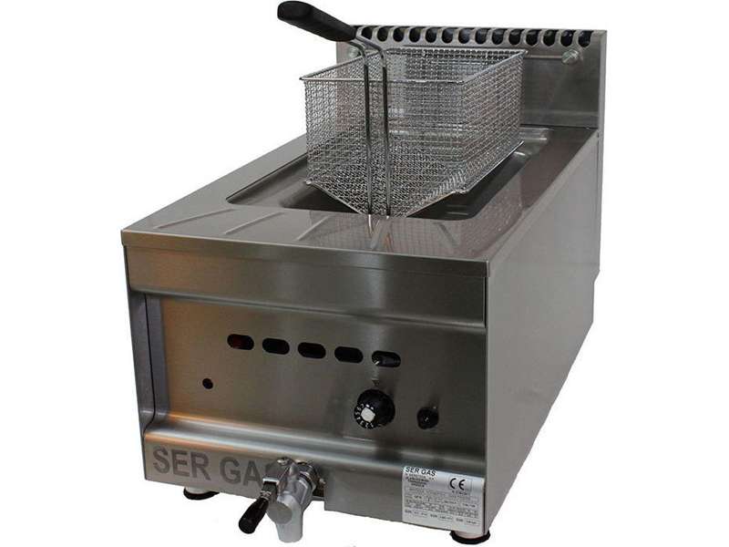 Φριτέζες υγραερίου με μονό ή διπλό κάδο αντίστοιχα χωρητικότητας 10 λίτρων. Παραδίδονται με καλάθι και καπάκι για να καλύπτεται το λάδι όταν δεν λειτουργούν.