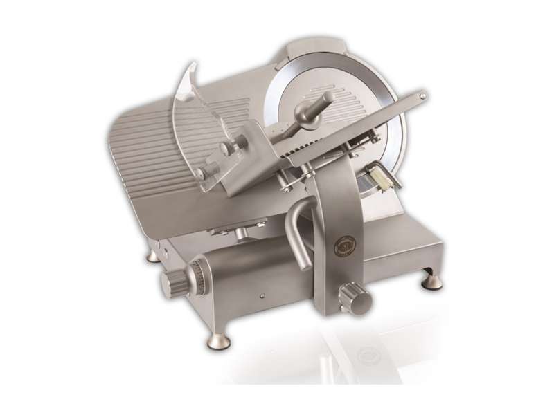 | Επιπλέον χαρακτηριστικά ζαμπονομηχανής | Στιβαρή και σταθερή κατασκευή σε όλα τα εξαρτήματα από ανοδιωμένο αλουμίνιο. Στεγανοποίηση IP54. Διάμετρος λεπίδας 35 cm, άφθονος χώρος μεταξύ της λεπίδας και της βάσης για διευκόλυνση του καθαρισμού. Λεπίδα από ανοξείδωτο χάλυβα, ανοξείδωτο ατσάλι και χρώμιο «Made in Italy», κλίση λεπίδας 40°. Κινούμενα μέρη που γλιστρούν σε δακτυλίους Teflon που επιτρέπουν μια ομαλή και εργονομική κίνηση χωρίς φθορά του χειριστή. Ενσωματωμένη ξύστρα με λείανση που εγγυάται την τέλεια όξυνση της λεπίδας και καθαρή κοπή του προϊόντος. Αθόρυβος κινητήρας, μονοφασικός ή τριφασικός. Ψύξη κινητήρα με εξαερισμό. Κίνηση με ιμάντα ή γρανάζι. Ενσωματωμένο ακονιστήρι με ειδικό προφυλακτήρα που “κρύβει” τη λεπίδα του μαχαιριού.Μπουτόν on / off με ρελέ ασφαλείας. |