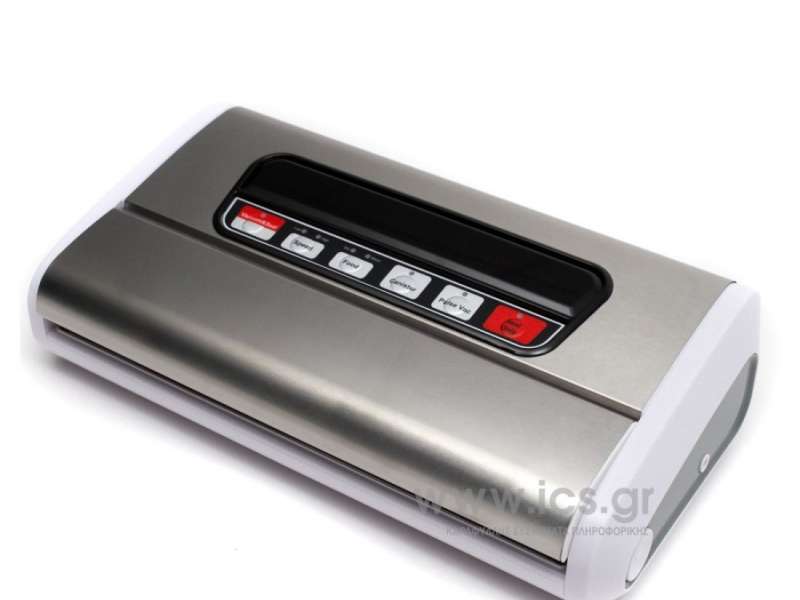 Vacuum κενού αέρος από ανοξείδωτο χάλυβα, οθόνη LED, διπλή αντλία, Pulse μποτόν. Με χώρο αποθήκευσης ρολού και ενσωματωμένο κόφτη. Διπλή στεγανοποιητική ράβος. Ξεχωριστή λειτουργία κενού για ξηρά ή υγρά τρόφιμα. Η διπλή αντλία εξασφαλίζει πιο σταθερές λειτουργίες και γρηγορότερη ταχύτητα εκκένωσης. Κουμπί παλμικό για έλεγχο του χρόνου και του βαθμού εκκένωσης. Προαιρετική ταχύτητα κινητήρα (υψηλή/χαμηλή). Πάχος συγκόλησης έως 3 mm, αποτρέπει τη διαρροή αέρα.