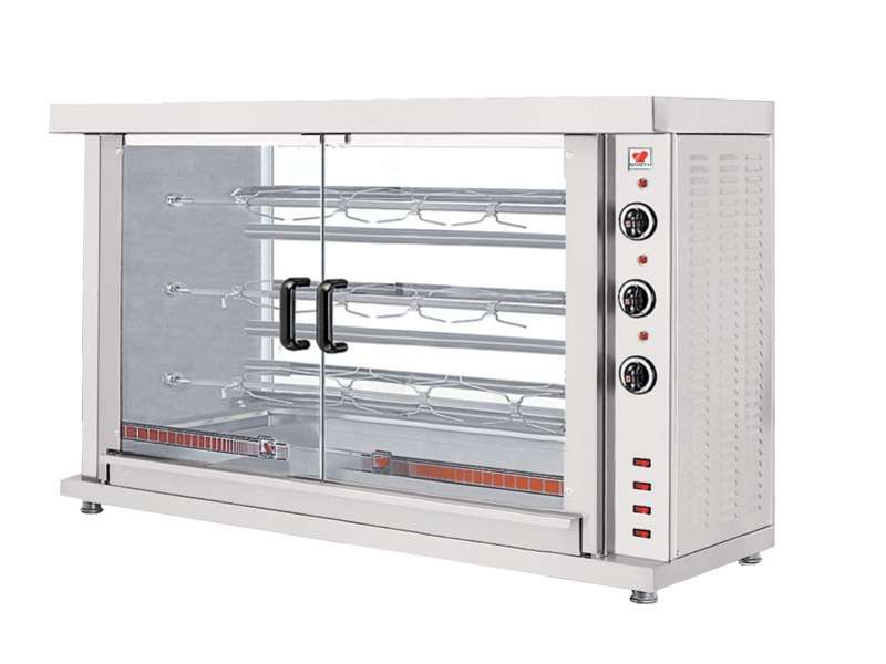 Ηλεκτρική επιτραπέζια κοτοπουλιέρα με 3 σούβλες και γατζάκια inox.Μήκος σούβλας: 103 cm