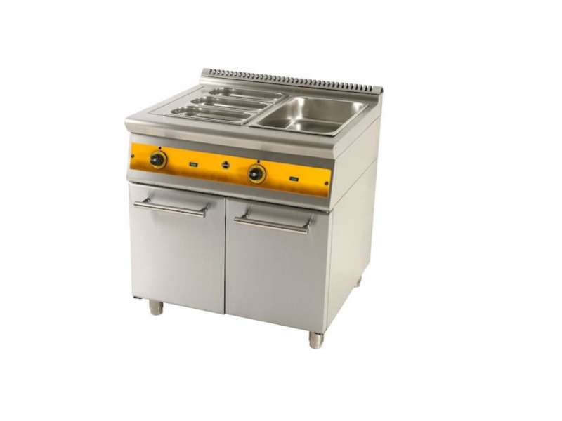 Ηλεκτρικά μπέν μαρί με μονό και διπλό κάδο αντίστοιχα. Παρέχει απόλυτα ασφαλή λειτουργία και χαμηλή κατανάλωση ρεύματος. Για το άδειασμα του κάδου διαθέτει όπως και οι φριτέζες, βάνα ασφαλείας. Τα υλικά κατασκευής τους εξασφαλίζουν πέρα από τις ιδανικές συνθήκες υγιεινής, την αντοχή της συσκευής σε πολύχρονη χρήση.