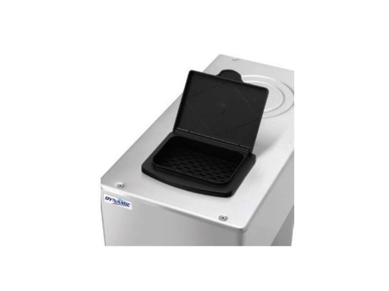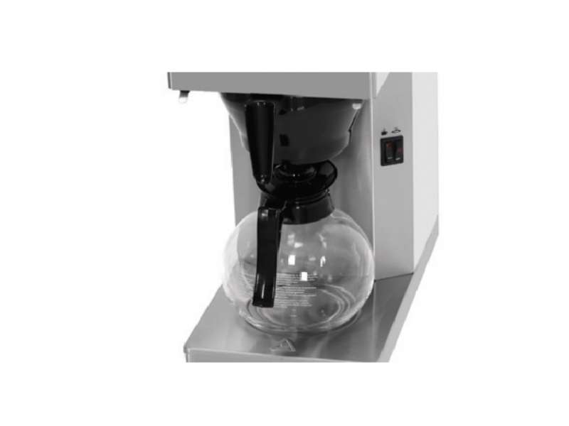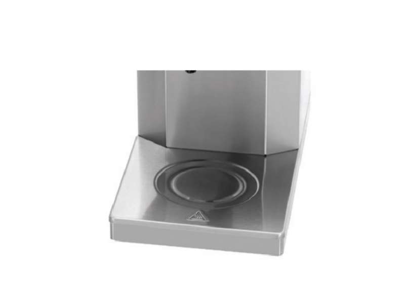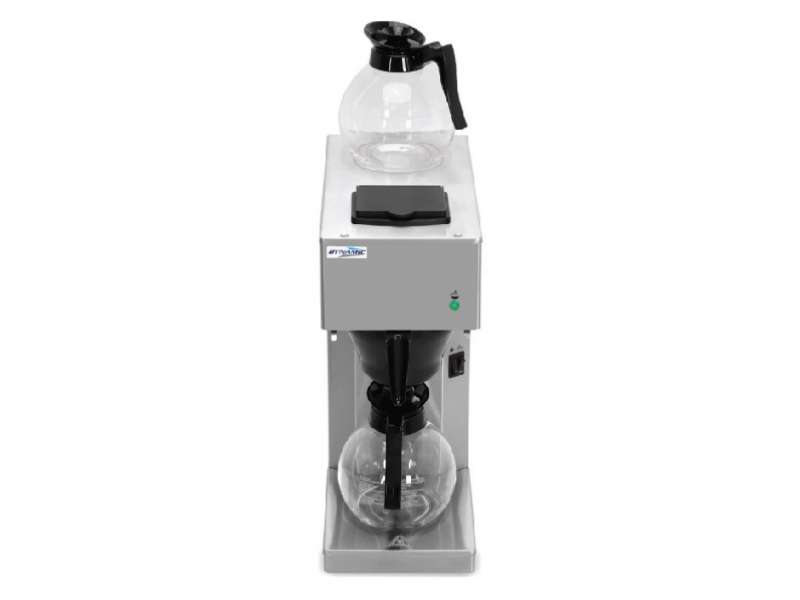 Ανοξείδωτη συσκευή καφέ της εταιρείας DYNAMIC με 2 γυάλινες κανάτες και δύο θερμαντικές πλάκες στην κορυφή & στη βάση.